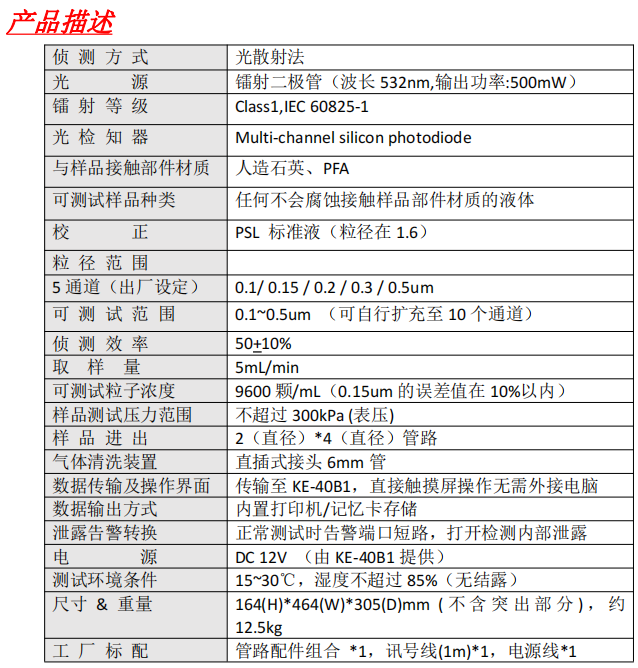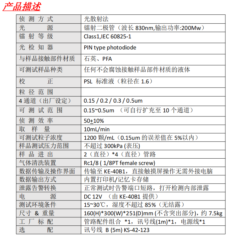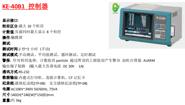 . 可自行設(shè)定的粒徑范圍 0.15~0.5um,通過 KE-40B1 的控制器