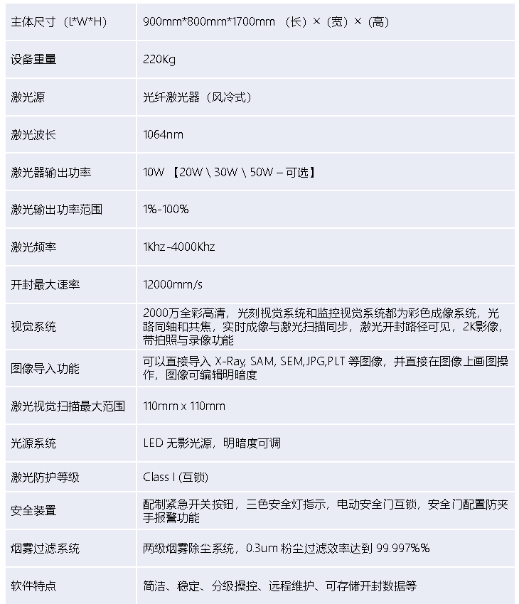 TOPS® LASER DECAP 規(guī)格參數(shù)