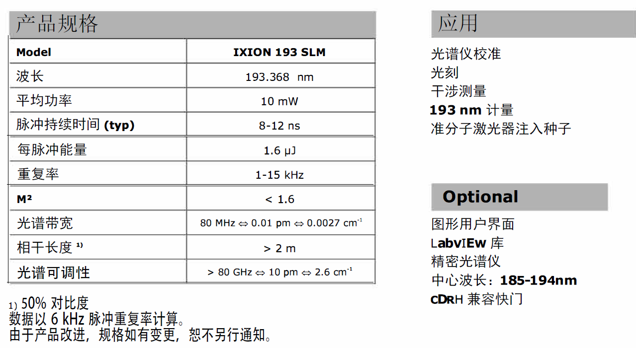 IXION 193 SLM 是一款單頻全固態(tài)激光系統(tǒng),適用于光學(xué)計量、193 nm 步進光學(xué)元件校準或高功率 ArF 準分子激光器的帶寬控制等應(yīng)用。