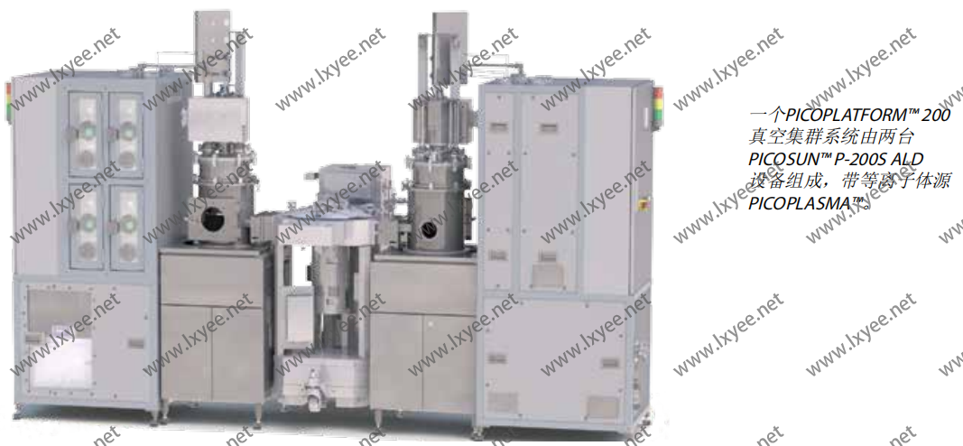 一個(gè)PICOPLATFORM™ 200真空集群系統(tǒng)由兩臺(tái)PICOSUN™ P-200S ALD設(shè)備組成,帶等離子體源PICOPLASMA™。