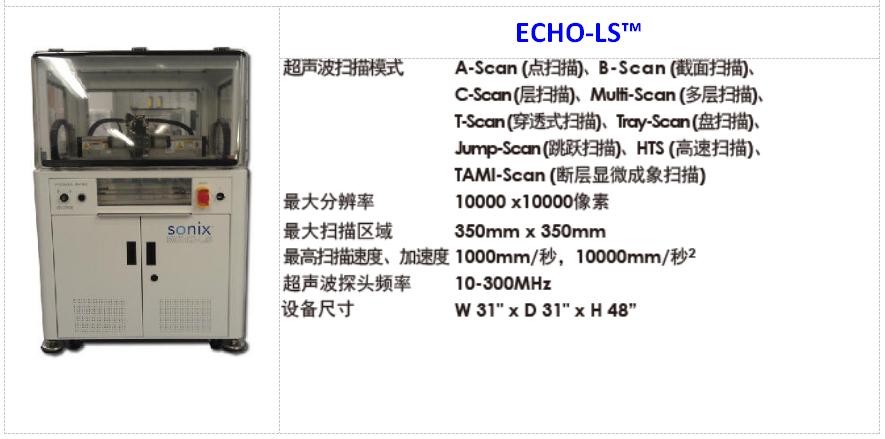 美國(guó) SONIX 超聲波掃描顯微鏡:ECHO-VS, ECHO Pro™全自動(dòng)超聲波掃瞄顯微鏡, 晶圓檢測(cè)設(shè)備 AutoWafe Pro, 封裝檢測(cè)設(shè)備ECHO-LS: