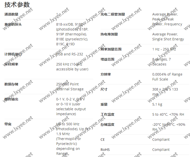 符合RoHS標(biāo)準(zhǔn)的1936 - R單通道高性能光功率和能量計(jì)是市場上最復(fù)雜的光學(xué)儀表之一。這些儀器結(jié)合了1931-C卓越的femtowatt級(jí)靈敏度和1935-C極強(qiáng)的多功能性,堪稱真正革命性的儀器。所有兼容的探測器將與儀器一起工作,并且是熱插拔型,避免當(dāng)必須使用不同的傳感器時(shí),需要循環(huán)供電。1936-R配有校準(zhǔn)證書、方便的快速入門指南、220伏設(shè)置所需的保險(xiǎn)絲和電源線。