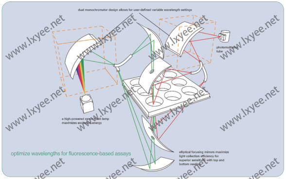 雙不柵設(shè)計(jì)使得使用者可以對(duì)激發(fā)和發(fā)射波長都進(jìn)行優(yōu)化,獨(dú)物的光譜掃描功能可以幫助確定準(zhǔn)確的激發(fā)和發(fā)射波長。光柵的波長可調(diào)節(jié)性使得多標(biāo)記應(yīng)用成為可能,不再需要預(yù)先配備特殊的濾光片。FlesStation可進(jìn)行多達(dá)6對(duì)熒光檢測,比例測鈣可輕松完成。