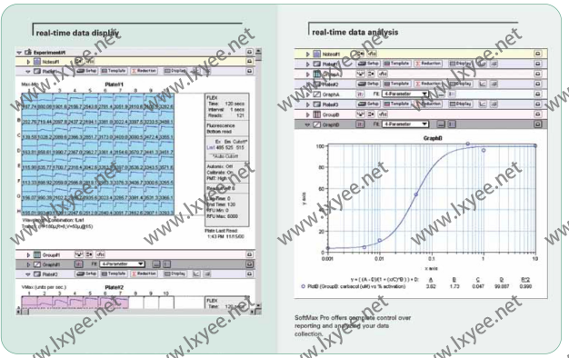 FlexStation使用行為標(biāo)準(zhǔn)的SoftMax Pro軟件控制,通過SoftMax Pro 可以幾秒內(nèi)完成protocol設(shè)計(jì)和數(shù)據(jù)分析,指尖下就可以完成數(shù)據(jù)平滑處理,Vmax,EC50, IC50,曲線下積分和自定義算法設(shè)計(jì),SoftMaz Pro軟件控制的實(shí)驗(yàn)參烽包括: