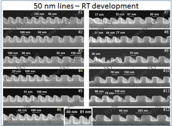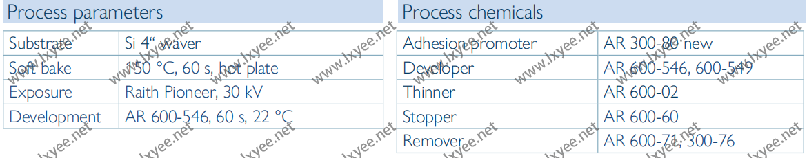用于制備10nm溝槽(174 nm膜,100n)AR 6200.09需要的劑量約。220 pC /厘米(30kv,顯影AR 600-546)