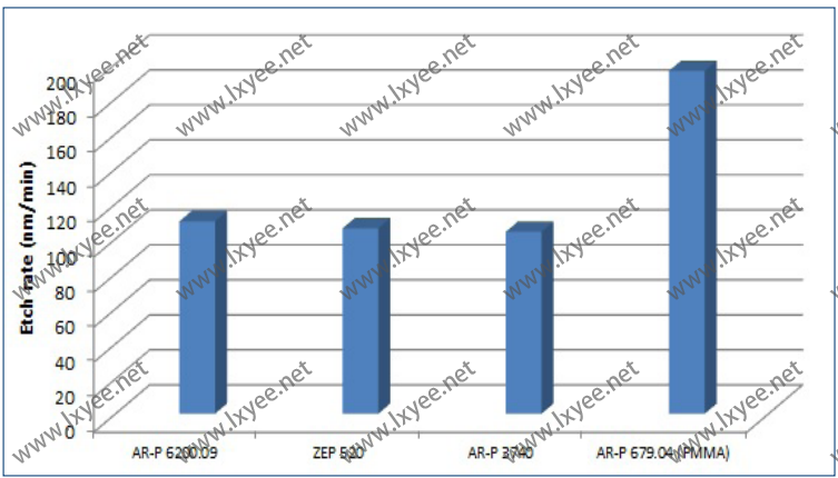 CSAR 62的特征是高等離子體刻蝕抵抗。In AR-P diagram, 等離子 蝕刻 率6200.09與的相比AR-P 3740(光刻膠),AR-P 679.04(PMMA抗蝕劑)和ZEP 520A在CF4 + O2等離子體。