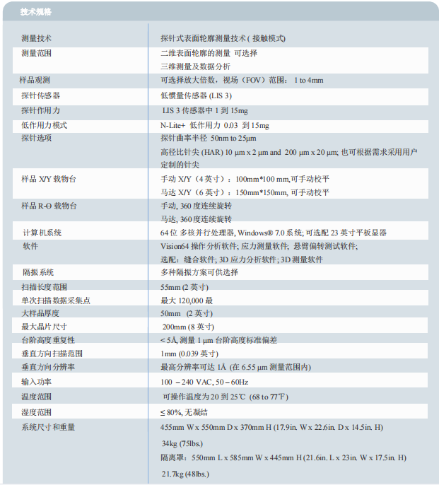 DektakXT 技術(shù)規(guī)格參數(shù):