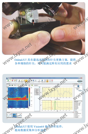 臺(tái)階儀性能優(yōu)劣取決于以下三方面: 測(cè)量重復(fù)性, 測(cè)試速度和操作難易程度,這些因素決定了實(shí)驗(yàn)數(shù)據(jù)的質(zhì)量和實(shí)驗(yàn)操作的效率。DektakXT 采用全新的儀器系統(tǒng)構(gòu)造和最優(yōu)化的測(cè)量及數(shù)據(jù)處理軟件來(lái)實(shí)現(xiàn)可靠、快速和簡(jiǎn)易的樣品檢測(cè),達(dá)到最 佳的儀器使用效果。