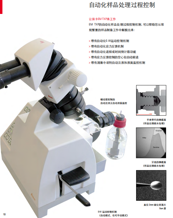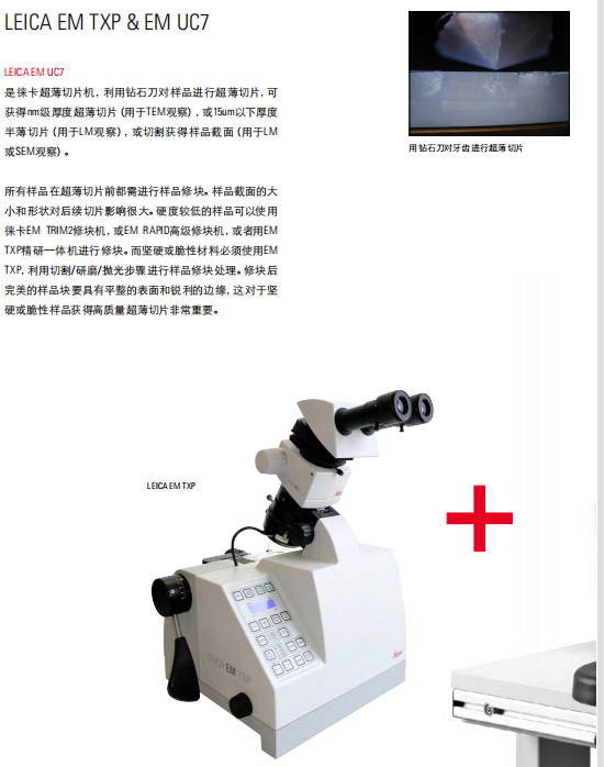 EM TXP ,此類樣品都可被輕易處理完成。另外,借助其多功能的特點(diǎn),Leica EM TXP 也是一款可為離子束研磨技術(shù)和超薄切片技術(shù)服務(wù)的極高效的前制樣工具。