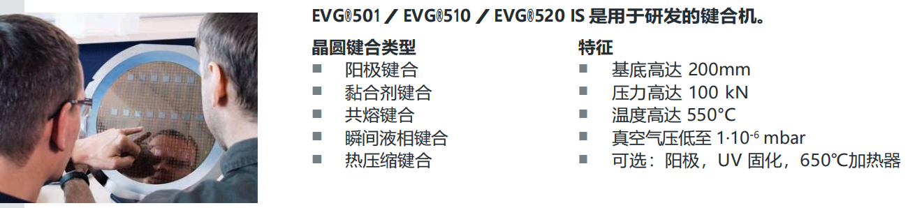 括陽極,熱壓縮,玻璃料,環(huán)氧樹脂,UV 和熔融鍵合。EVG500 系列基于獨特的模塊化鍵合室設(shè)計,可實現(xiàn)從研發(fā)到大