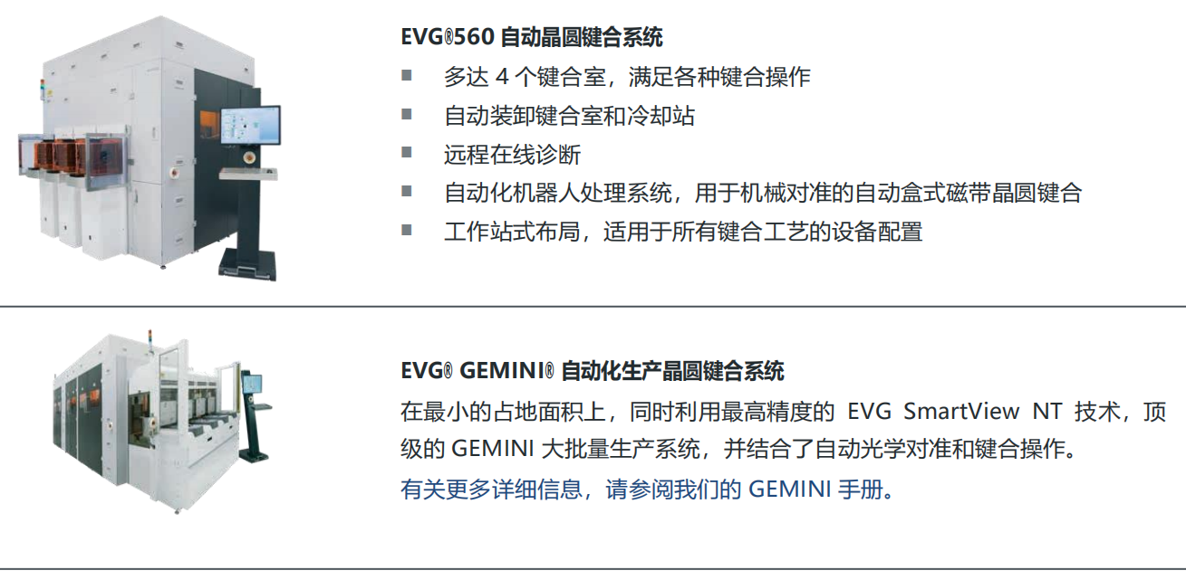 EVG 擁有超過 25 年的晶圓鍵合機制造經(jīng)驗,擁有 2000 多擁有多年晶圓鍵合經(jīng)驗的員工,同時,GEMINI 是使用晶圓鍵合的 HVM 的行業(yè)標準。根據(jù)型號和加熱器尺寸,EVG500 系列可以用于碎片和 50 mm 至 300 mm 的晶圓。這些工具的靈活性非常適合中等批量生產(chǎn)、研發(fā),并且可以通過簡單的方法進行大批量生產(chǎn),因為鍵合程序可以轉(zhuǎn)移到 EVG GEMINI 大批量生產(chǎn)系統(tǒng)中。