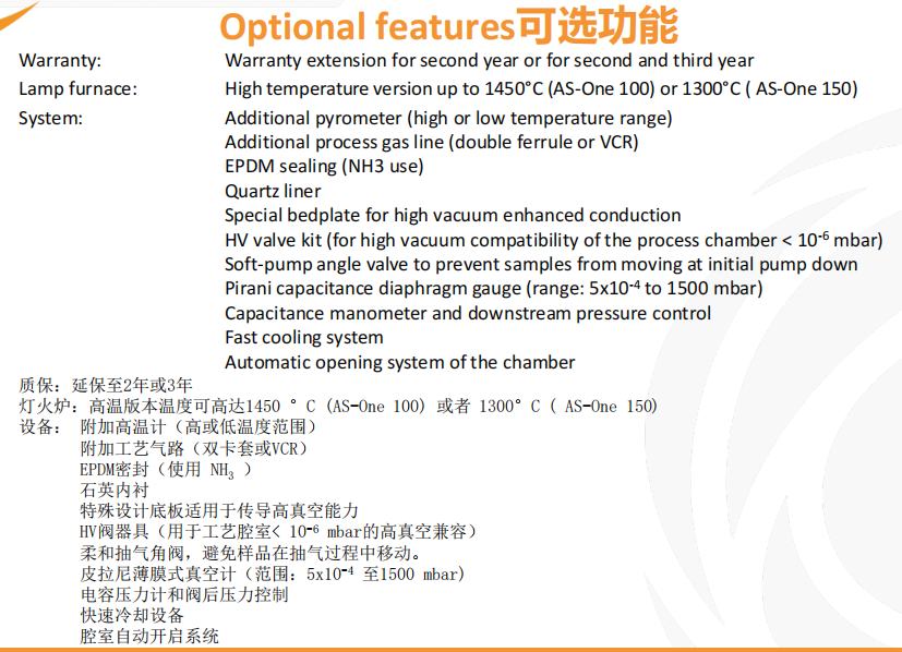 • Atmospheric and vacuum process capability •常壓和真空下工藝性能