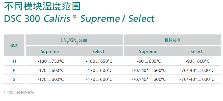耐馳 DSC 300 Caliris® 提供三種不同可選模塊。所謂模塊指的是模塊化的爐體 +傳感器以及周邊系統(tǒng),不同的模塊會(huì)有不同DSC 300 Caliris® Supreme