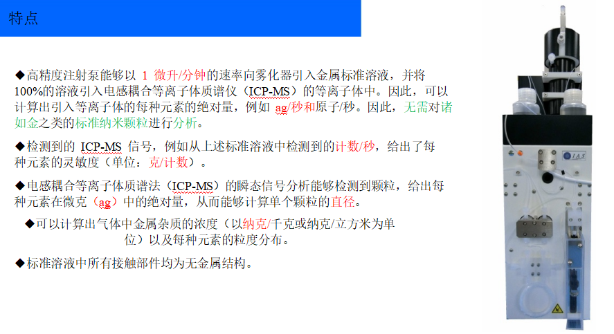 ● 還使用了 MSGG(金屬標準氣生成)裝置來監(jiān)測 ICP-MS 靈敏度的變化,并以鉬氣態(tài)標準作為內(nèi)標。