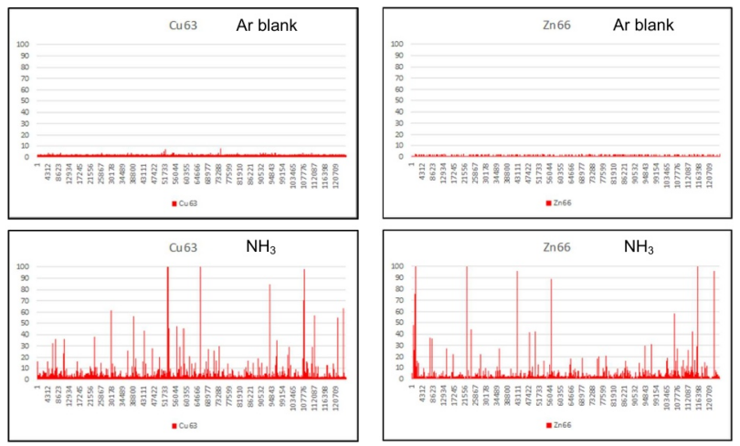 通過 GED-ICP-MS 技術(shù),在高純度 NH?氣體中檢測到了許多銅和鋅的顆粒。