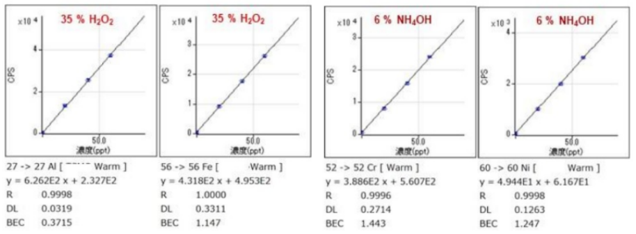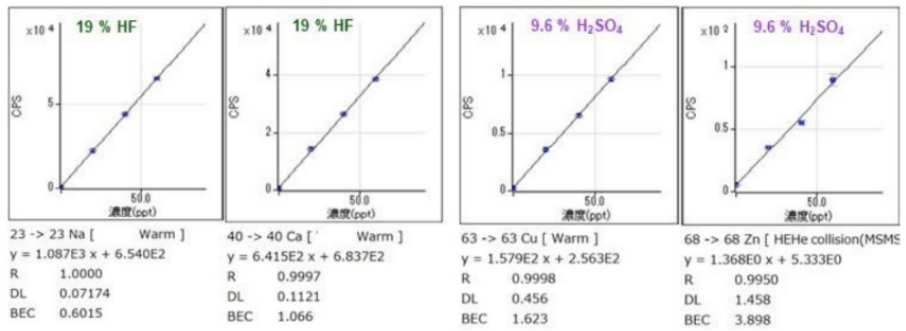 目前分析的典型化學物質(zhì)有氫氟酸(HF)、H2O2、氯化氫(HCl)、氫化三甲基胺(TMAH)、NH4OH、H2SO4、異丙醇(IPA)和稀釋劑。這些化學物質(zhì)僅通過一臺電感耦合等離子體質(zhì)譜儀(ICP-MS)依次進行分析,持續(xù) 24 - 7 小時。針對每種化學物質(zhì),調(diào)諧條件可自動切換。