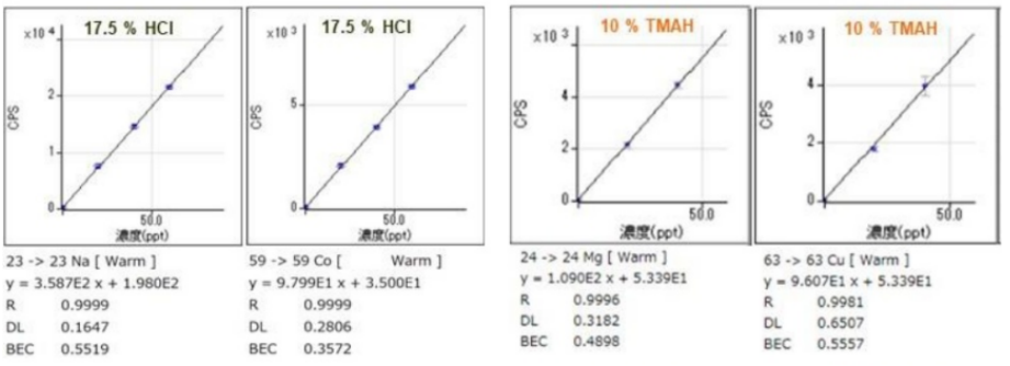 - 檢查校準曲線的相關系數(shù)、最小靈敏度、標準偏差(SD)和相對標準偏差(RSD),以及如果結(jié)果超出限值時的自動重新分析功能。